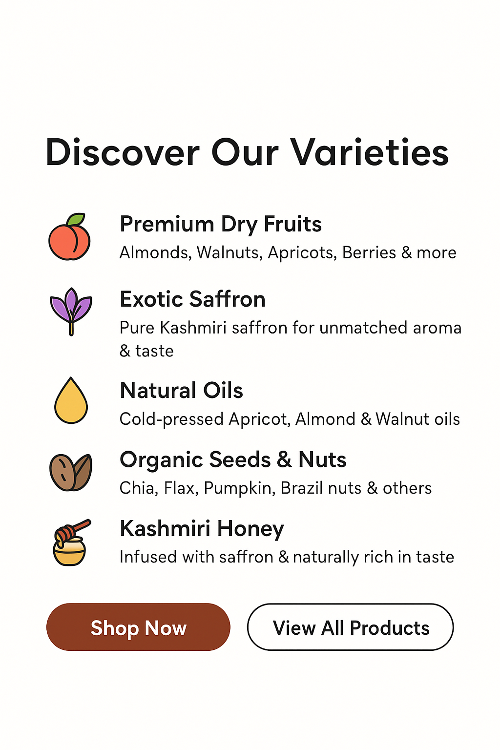 We deliver premium, handpicked Kashmiri dry fruits and specialty products, carefully packed to preserve their natural taste, freshness, and nutrition.